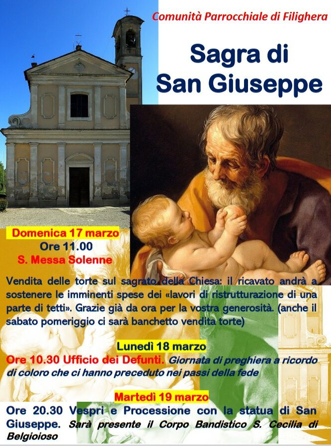 Da lunedì 18 la S. Messa feriale si celebrerà in chiesa grande, per permettere l’allestimento della pesca di beneficenza in occasione della Sagra del Volontariato e di Primavera.