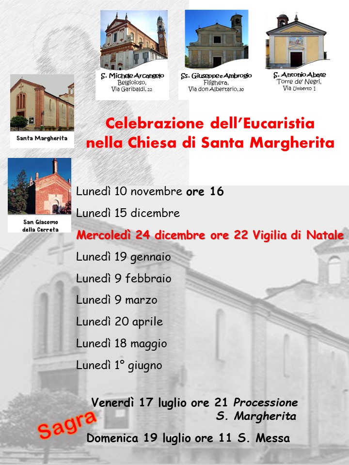 lunedì 10 ore 16 S: Messa a S. Margherita