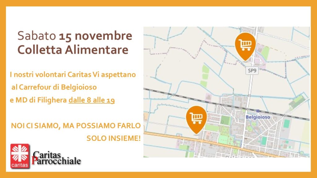 RACCOLTA ALIMENTARE: carne in scatola, caffè, legumi, olio d’oliva, tonno. Grazie per la generosità che sempre dimostrate perle iniziative caritative a favore della nostra comunità.