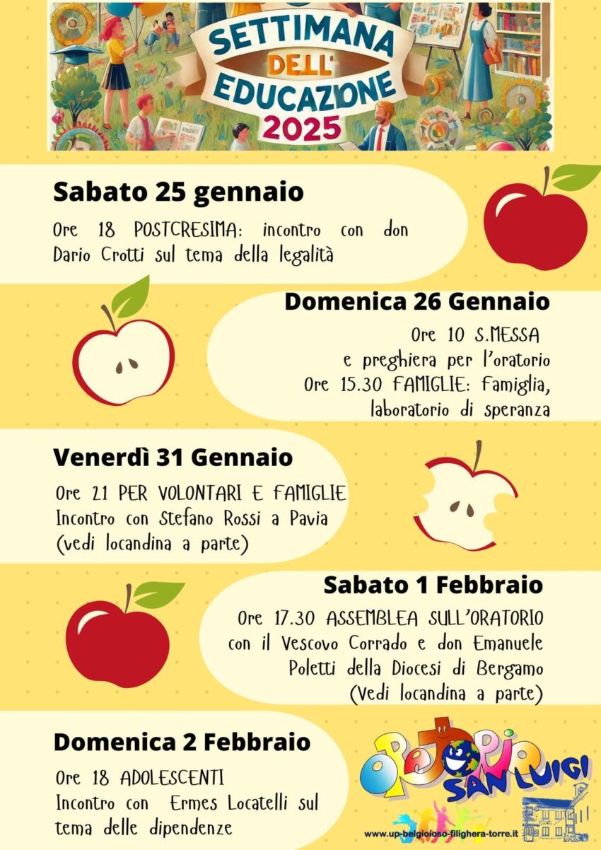 Il calendario 2025-2026 catechismo e incontri
